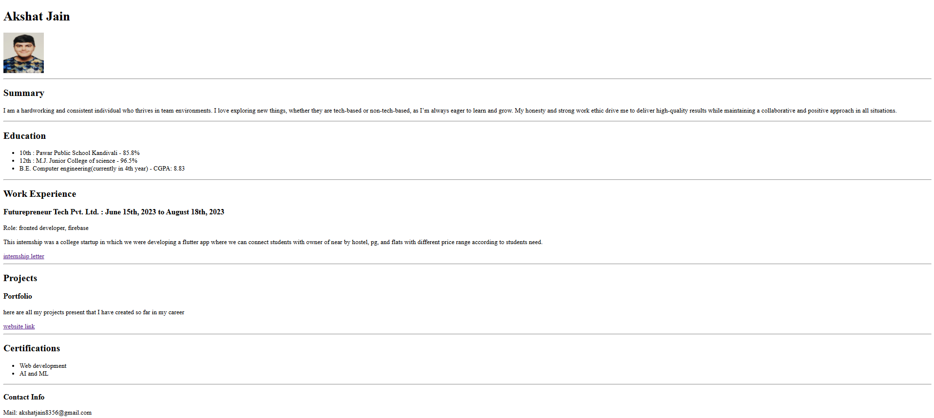 It's my resume with all the details about my projects and my work experience that I have done up till now.